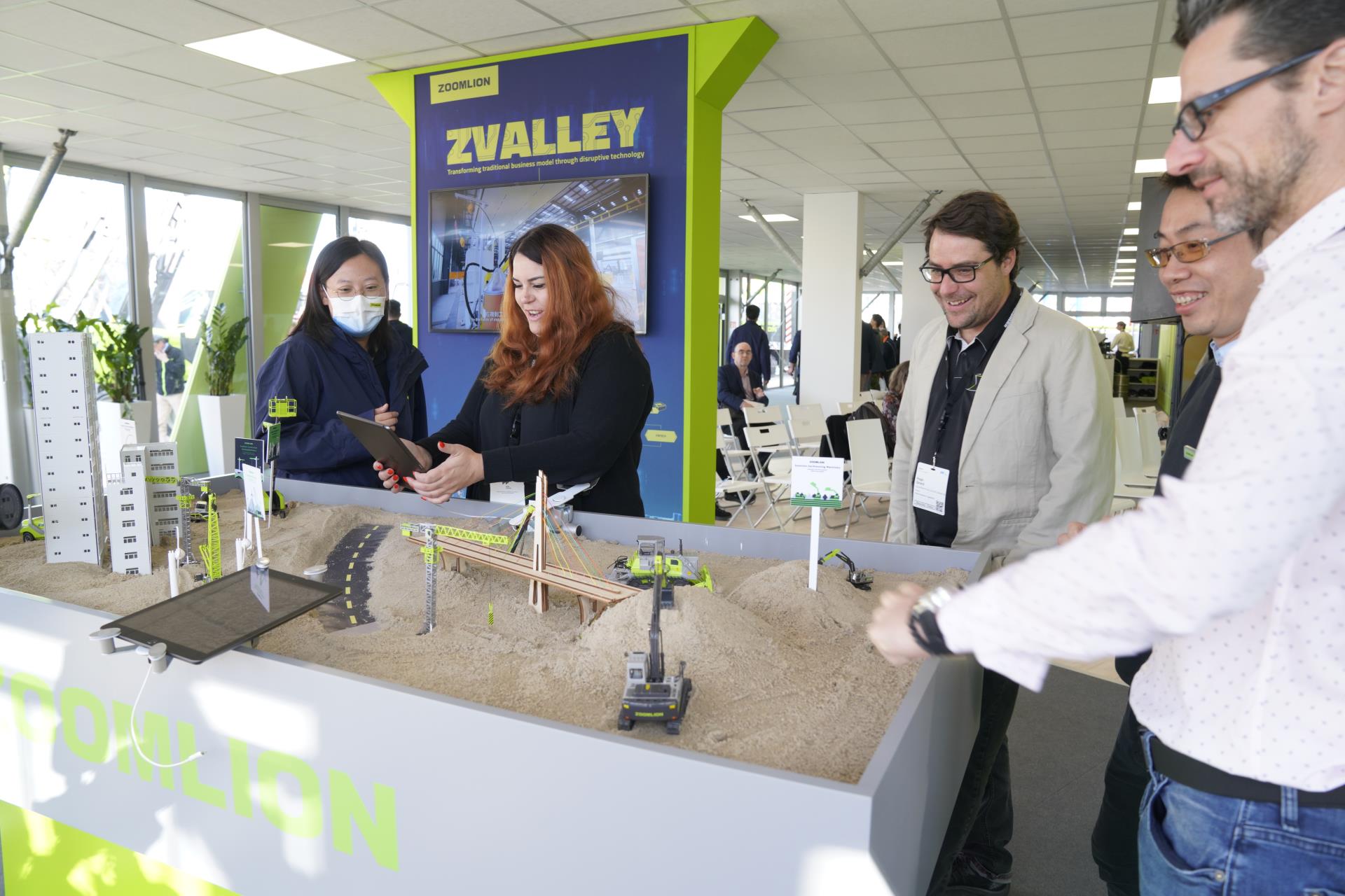 在展區(qū)一樓的互動體驗區(qū),中聯重科打造了微景觀建筑,通過實景VR對海外大型工程項目進行三維虛擬精確設計和施工模擬,讓觀眾近距離感受工程機械工況和操作體驗,還有互動PK賽、現場掃碼打卡贏好禮等各種互動體驗版塊和LED互動屏,讓觀眾更好地體驗和感受到中聯重科的新科技、新成果。