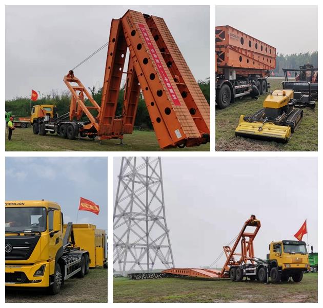 中聯(lián)重科應急架橋車已經多次考驗,在本次演練中表現(xiàn)一如既往地“沉穩(wěn)”。在洪水沖毀了道路、橋梁的模擬情景中,中聯(lián)重科應急架橋車迅速展開架橋,操作機手手持遙控器,短短十幾分鐘,一座長25米、寬3.2米的臨時橋梁就已搭建完畢,迅速恢復了通行。該臨時橋梁可承載30噸,**大限度保障人員、設備、物資安全通過。