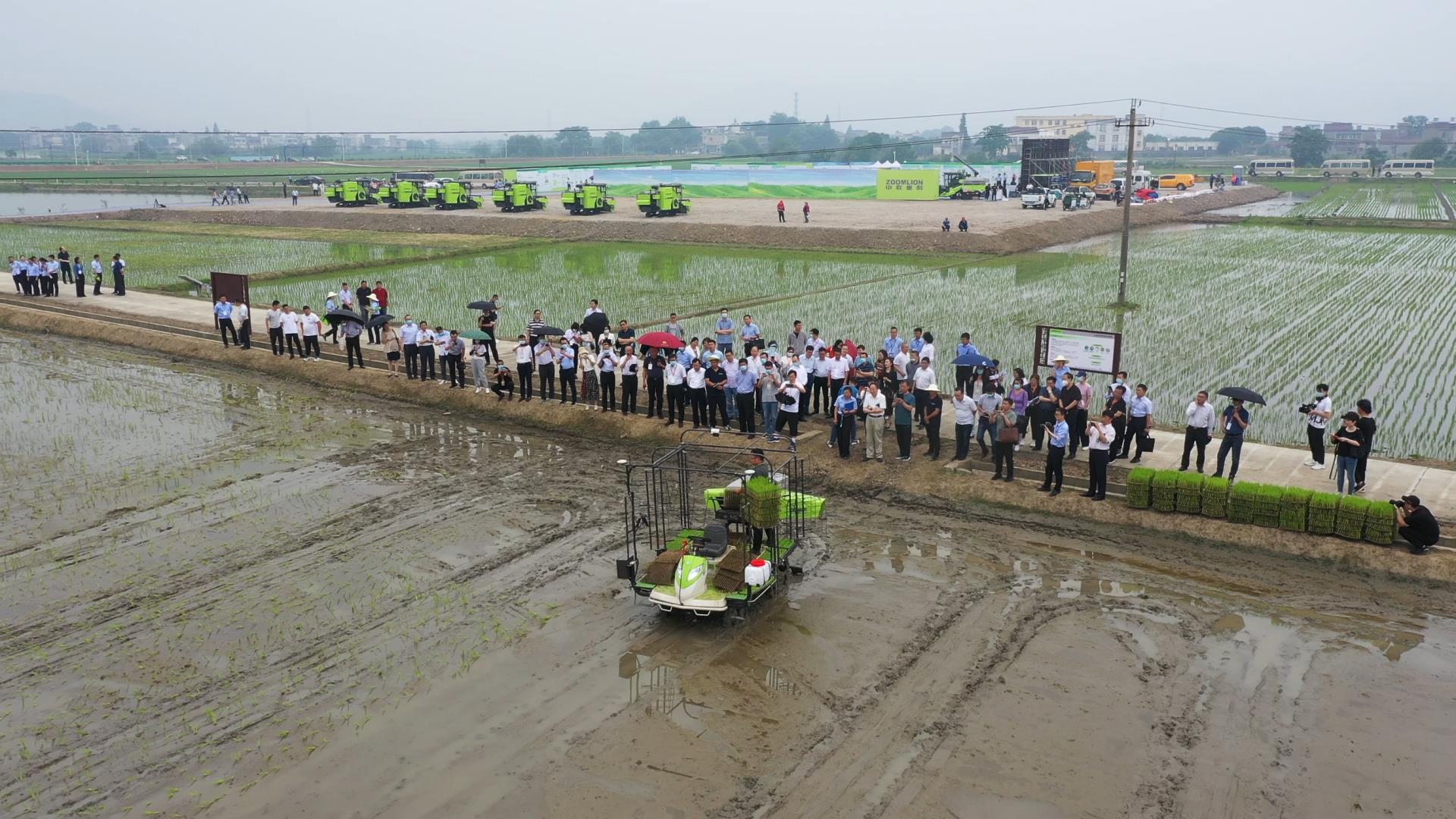 活動(dòng)現(xiàn)場(chǎng),中聯(lián)重科無人拖拉機(jī)衛(wèi)星平地、無人拖拉機(jī)旋耕、無人拋秧機(jī)、無人植保機(jī)、自動(dòng)灌溉等“黑科技”,在搭載了數(shù)字化管理設(shè)施的高科技農(nóng)田中輪番亮相,向廣大嘉賓展現(xiàn)了“無人農(nóng)場(chǎng)”的智慧魅力。