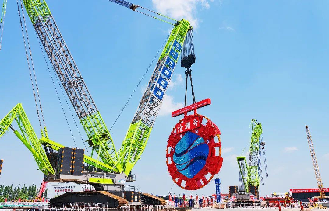 5月11日上午,世界**長的公路水下盾構隧道——海太長江隧道項目迎來重要節(jié)點。隨著現(xiàn)場總指揮一聲令下,國內**大直徑盾構機“滄淵號”重達481.5噸的巨型刀盤,由中聯(lián)重科1600噸履帶起重機順利吊裝下井,標志著項目建設再次邁出關鍵一步。